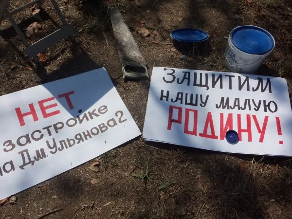 Сегодня жители домов №2 по улице Дмитрия Ульянова и №4 по проспекту Гагарина, находящиеся со 2-го августа в бессрочном пикете против «уплотнительной» застройки своей придомовой территории, вышли на субботник.