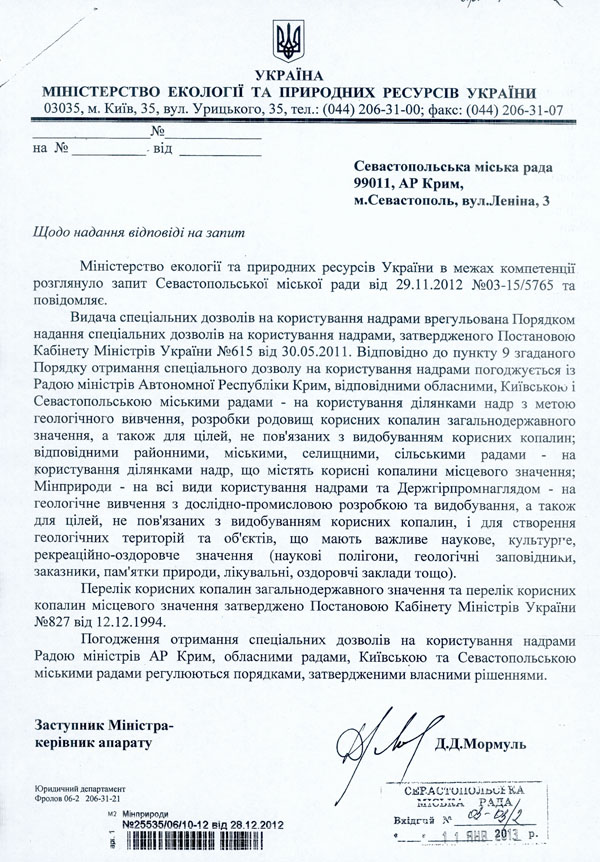 В письме указано: для того, чтобы производить добычу недр, в том числе и морского песка, необходимо получить специальное разрешение. Согласно порядку оформления данного документа, предприниматель, претендующий на полезные ископаемые, обязан согласовать свои действия с органами местного самоуправления, в список которых входит и Севастопольский городской совет. Это правило закреплено Постановлением Кабмина №615 от 30.05.2011. Данную информацию в ходе заседания постоянной экологической комиссии сообщил ее председатель Карп Булатов.