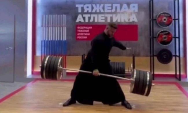 На форуме «Россия — спортивная держава» в Самаре зрителей покорил мужчина в рясе, который одной рукой легко отрывает от пола 200-килограммовую штангу.