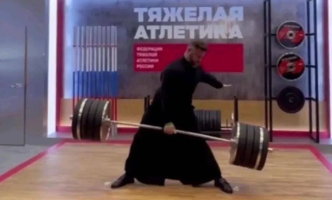 Батюшка оказался мастером спорта по пауэрлифтингу. Видео: Readovka / VK Видео