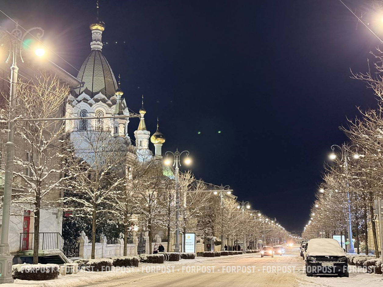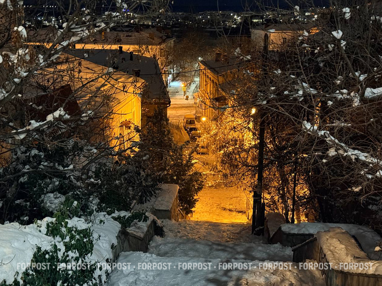 Но особенно эффектно заснеженный Севастополь смотрелся ночью.