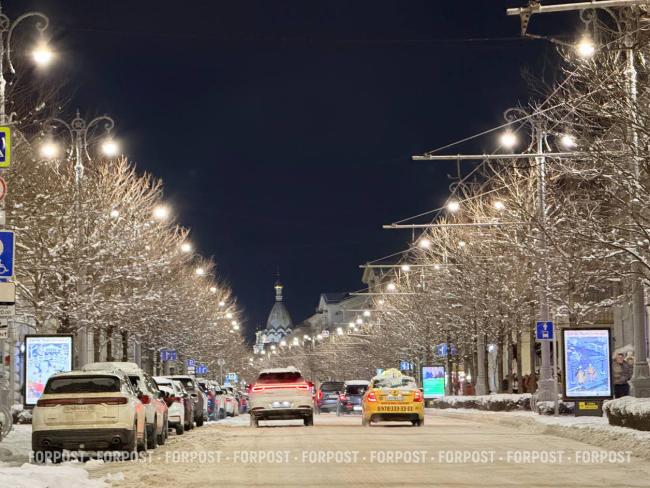 В сочетании с новогодней подсветкой привычные мостовые выглядели очень нарядно.