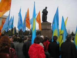 В митинге, который состоялся у памятника поэту на площади перед Гагаринским районным советом, приняли участие представители севастопольских отделений Всеукраинского общества «Просвита», Партии регионов, блока «Наша Украина», блока Юлии Тимошенко, партии «Собор».