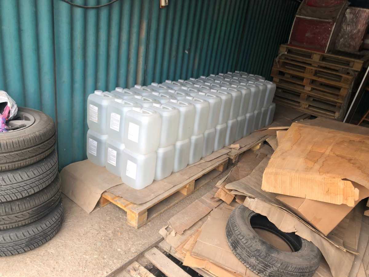 В ходе обыска у 55-летнего местного жителя в торговом павильоне и в автомобиле было обнаружено и изъято 830 литров этилового спирта и более 30 литров спиртосодержащей жидкости.