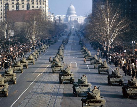 В США часто проводятся гражданские парады с участием военных, но не принято проводить чисто военные парады с техникой. Добавим также, что в августе прошлого года американские военные приняли участие в военном параде на Украине.