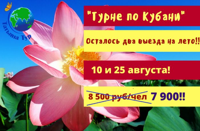 Тур выходного дня "Турне по Кубани"(Долина Лотосов) - ТОРОПИТЕСЬ Лотосы цветут только летом!!