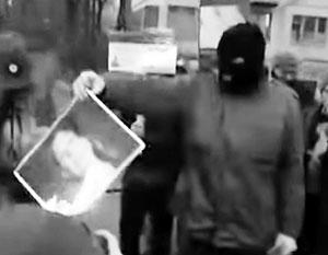 в Киеве протестующие сожгли изображение официального представителя Госдепа Виктории Нуланд,