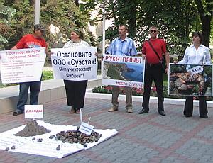Проверкой, проведенной прокуратурой, установлено, что положительное заключение государственной экологической экспертизы и разрешение на проведение работ по добыче песка были выданы ООО «Суэста» в декабре 2011 г. Государственной Азово-Черноморской экологической инспекцией в нарушение требований природоохранного законодательства. Данное заключение и разрешение отменены.
