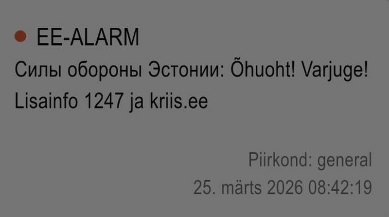 В среду утром система оповещения об угрозах EE-ALARM разослала на мобильные телефоны эстонцев SMS-сообщения следующего содержания: «В этом районе существует угроза применения беспилотников. Если вы их увидите, спрячьтесь и позвоните по номеру 112».