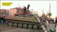 Разгневанные жители пинали и патрульный автомобиль, в котором увозили задержанных солдат. Забрасывали камнями и пытались разбить машину военных.