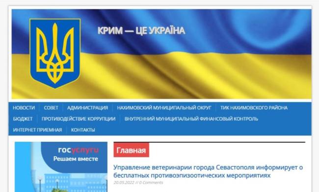 Баннер с изображением флага и герба Украины закрепили на главной странице сайта Нахимовского муниципального округа Севастополя. По словам главы округа Михаила Лазарева, сайт администрации взломали.