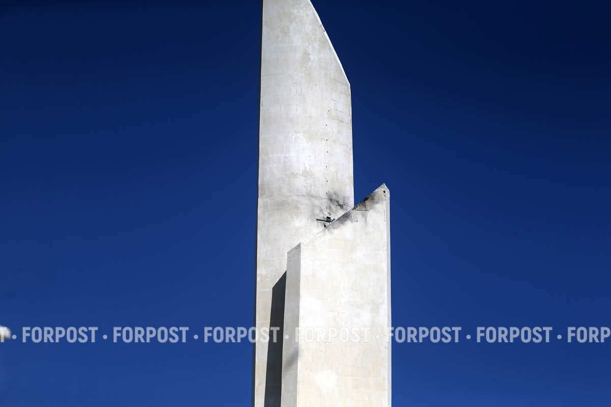 Обелиск «Городу-герою Севастополю», известный также как «Штык и парус», пострадал при массированной атаке беспилотников на город в ночь на 26 апреля. Монумент, возвышающийся над мысом Хрустальным, получил повреждения в верхней части, передаёт с места корреспондент ForPost.