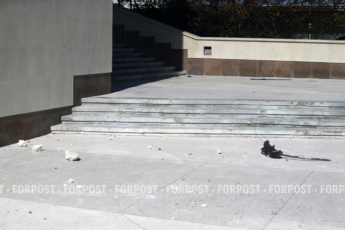 Пока официальных заявлений о попадании в памятник дрона или его обломков не поступало, однако на фотографиях можно видеть последствия прилёта.