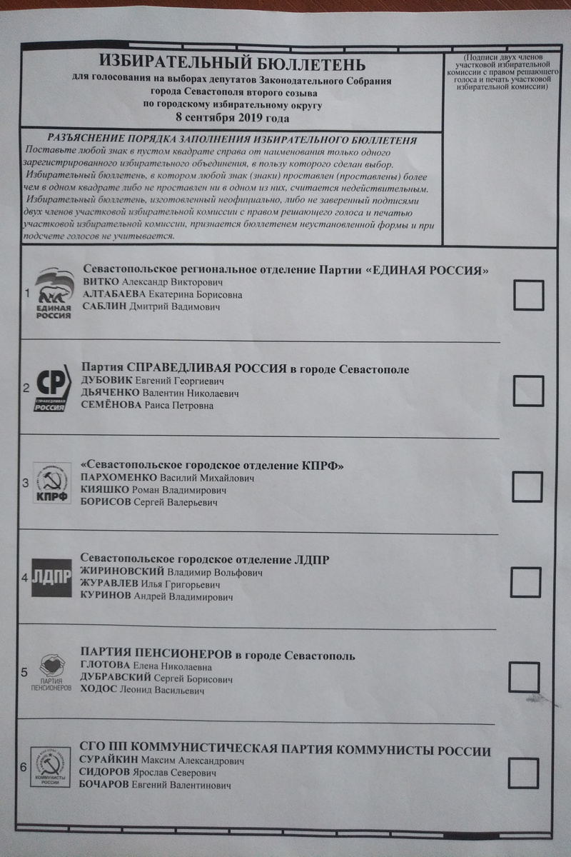Севастопольцам предложат выбрать из шести политических партий, чья регистрация на выборах была утверждена Севизбиркомом.