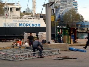 В Артбухте Севастополя, у паромного причала, устанавливают большой экран – такой же, как на площади Нахимова. Монтируют его специалисты предприятия «Российские сети вещания и оповещения» [далее в тексте – РСВО]. Специалисты говорят, что установят «телевизор для прохожих» уже сегодня к вечеру, на нём будут транслировать «праздники и информационные сообщения».