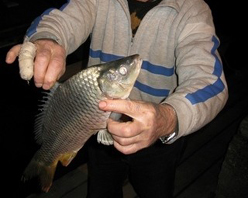 На самом деле, периодически попадается пресноводная рыбка у наших берегов. Судак - довольно часто, бывает 2-3, а бывает и в р-не 5-6 кило. Карпы пока не встречались.