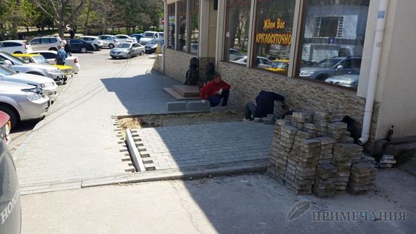 «Едва городские власти добились сноса летних террас и пристроек к барам и ресторанам в центре Севастополя, как город пополнился очередным нарушителем. Только успели расправиться с рестораном "Казбек", как на наших глазах вырастает очередная уличная конструкция — возле бара "Если" на улице Щербака, 1. По всей видимости, заведение поднимает уровень тротуара для будущей летней террасы. Неужели в Севастополе началась новая волна незаконных построек в историческом центре?», — пишет наш читатель.