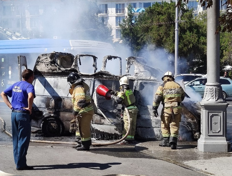 В центре Севастополя на площади Ушакова сгорел микроавтобус. Происшествие случилось сегодня около полудня, сообщают очевидцы в социальных сетях.