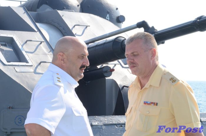 Далее российские и украинские моряки отработали организацию противовоздушной обороны отряда кораблей, фактически уничтожив скорострельными артиллерийскими установками воздушные мишени, сброшенных с самолётов Су-24 морской авиации Черноморского флота. Сходную задачу решали экипажи морских тральщиков (МТЩ) «Турбинист» ЧФ России и «Черкассы» ВМС Украины, которые вели стрельбу по воздушным мишеням сброс, которых был осуществлен с украинского военно-транспортного самолёта Ан-26.