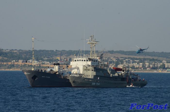 Позднее к учению подключились поисково-спасательные отряды флотов. Из спасательных сил ЧФ и ВМСУ был сформирован объединенный отряд, который в кратчайшие сроки по вводной вышел из Севастополя и был направлен к «аварийному судну» «Петр Градов», для оказания ему помощи, организации поиска и спасения личного состава, плавающего на воде.
