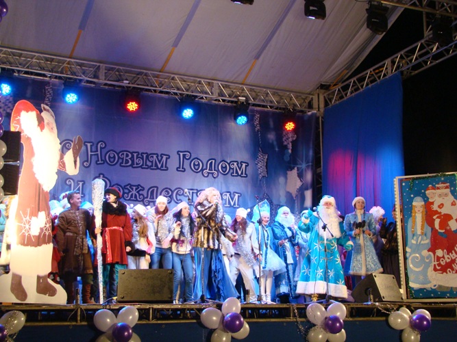 Народные гуляния были продолжены традиционным новогодним хороводом.