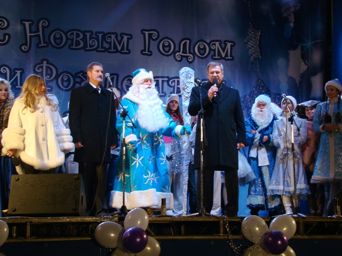 Право зажечь елку было предоставлено представителям руководство города, Деду Морозу со Снегурочкой и самым юным гостям праздника.