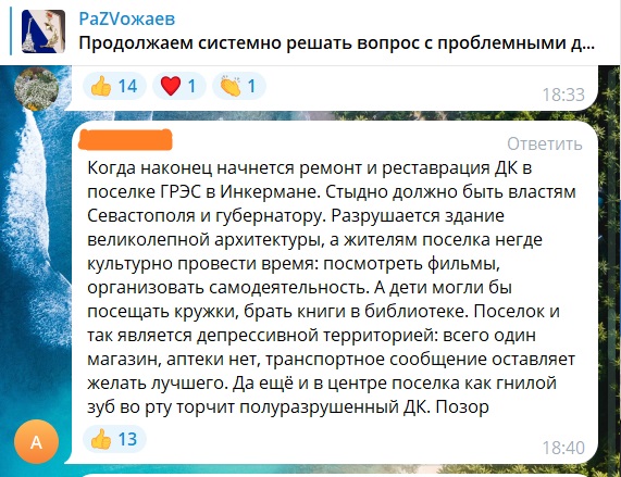 И что дадут эти суды? Почему не сделать процесс гласным, громким и прозрачным? Кто хозяин, какие-такие лица там ещё появляются. Жители Инкермана должны ходить на эти суды и бороться за свой объект. Если документы будут в порядке, инвестора можно всегда найти.