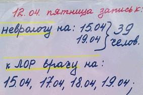Наш корреспондент проверил достоверность информации и прибыл 12 апреля в 06:30 к зданию больницы. В это время уже около входа в поликлинику находилось около 40 человек: