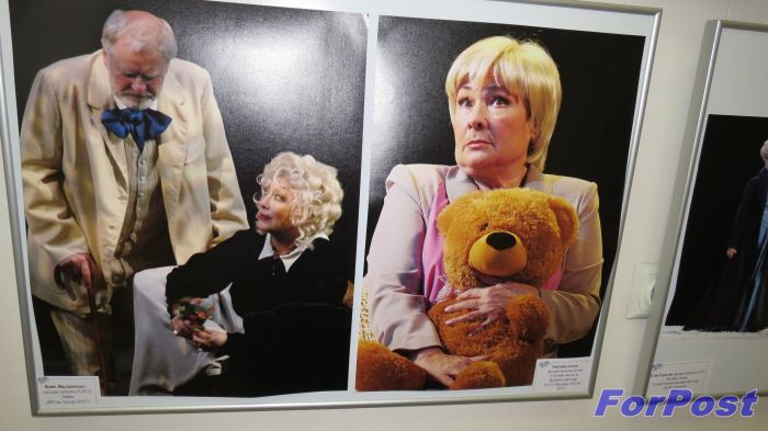 Экспозиция условно разделена на несколько частей. Первую составляют снимки со спектаклей последних лет с участием актеров-легенд севастопольских, киевских и московских театров, среди которых Юрий Яковлев, Богдан Ступка, Людмила Кара-Гяур, Юлия Борисова, Инна Чурикова, Владимир Этуш, Ада Роговцева и другие.