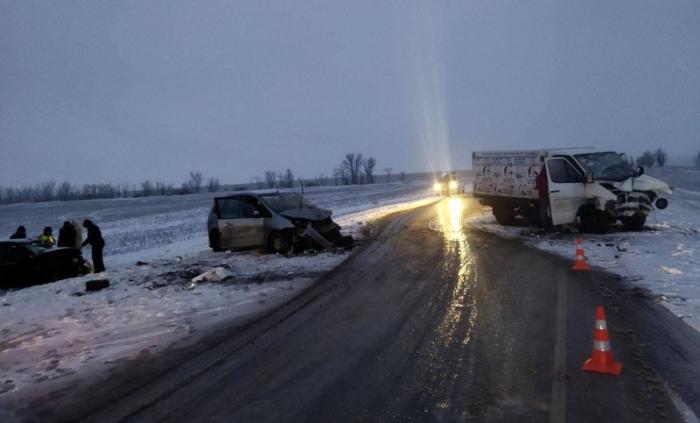 По данным ведомства, первая авария произошла 14 января на автомобильной дороге «Симферополь — Красноперекопск — граница с Херсонской областью» в районе села Сизовка. Около 17:20 водитель 1964 года рождения, ехавший за рулём «Мерседес Бенц», не справился с заносом автомобиля, в результате чего машину вынесло на встречную полосу, где она врезалась в ехавшую навстречу «Ладу Гранта». После столкновения «Мерседес» отлетел и в третью машину — зацепил «Форд Фокус».