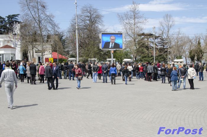 К полудню на площади Нахимова собрались горожане, чтобы задать Президенту свои вопросы. Многие из севастопольцев надеялись, что перед экраном, транслирующим встречу, для прямого включения будут установлены передвижные студии, и жители города смогут обратиться к главе государства напрямую.