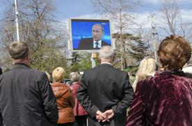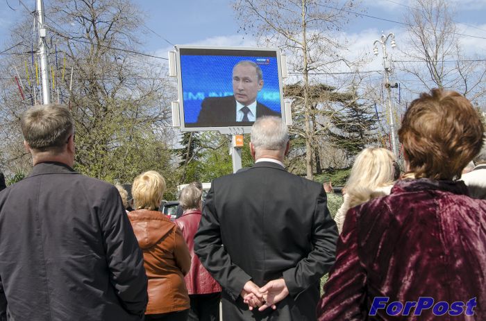 16 апреля на главной площади Севастополя имени П.С. Нахимова состоялась трансляция ежегодной "Прямой линии с Владимиром Путиным", в ходе которой Президент России ответил на вопросы граждан.