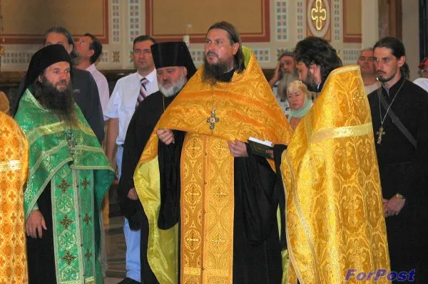 Перед началом выставки в Свято-Владимирском соборе Херсонеса был отслужен молебен. Сопровождал службу хор Александро-Невской лавры, приехавший в наш город в составе делегации, возглавляемой епископом Назарием.
