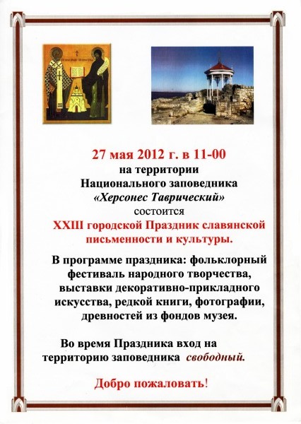 27 мая на территории Национального заповедника «Херсонес Таврический» пройдет ХХIII Городской праздник славянской письменности и культуры.