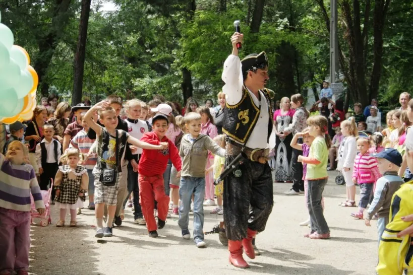 Были веселые розыгрыши, настоящая экспедиция следопытов по тропинкам парка, викторина, конкурс рисунков на асфальте и детская дискотека с зажигательными танцами.