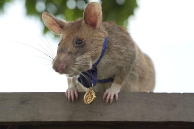 Крыса-сапёр получила маленькую медаль за храбрость. Как пишет Lenta.ru, гигантская африканская крыса по кличке Магава за свою карьеру обнаружила на территории Камбоджи 39 мин и 28 взрывчатых веществ.
