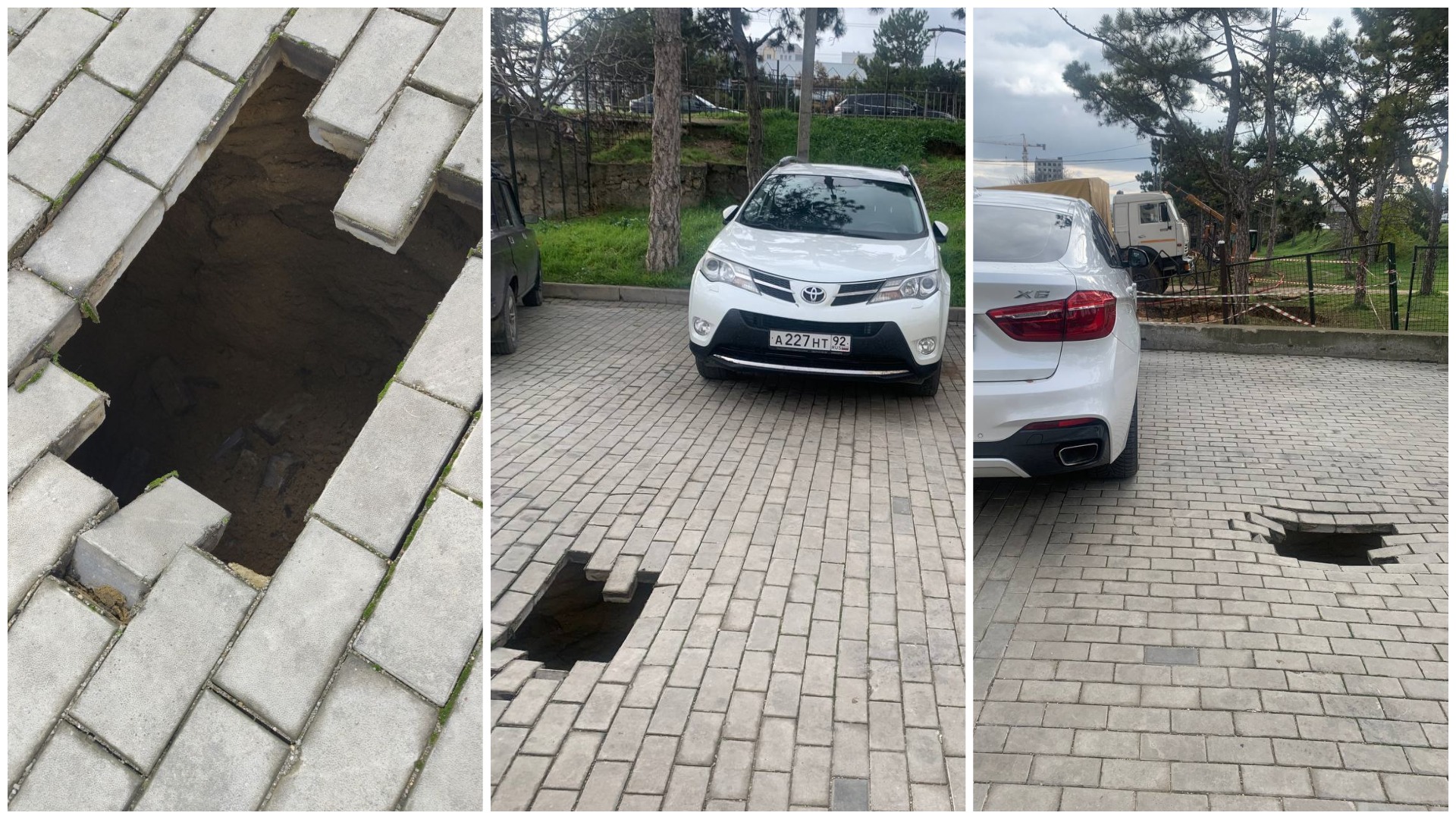 Кроме того, на другой стороне дороги образовались довольно глубокие провалы, а вокруг них начала проваливаться плитка.