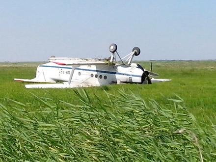 Ан-2 в результате потери мощности двигателя совершил аварийную посадку и перевернулся на кабину.