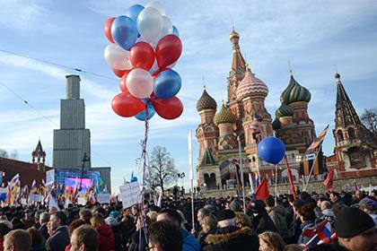 Более 110 тысяч человек насчитали на митинге в честь присоединения Крыма, который проходит в центре Москвы.
