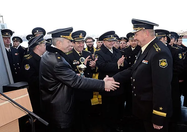 В Севастополе корабль встречали начальник штаба Черноморского флота контр-адмирал Александр Носатов, заместитель командующего ЧФ по работе с личным составом капитан 1 ранга Юрий Ореховский, командир бригады противолодочных кораблей капитан 1 ранга Олег Криворог, другие официальные лица.