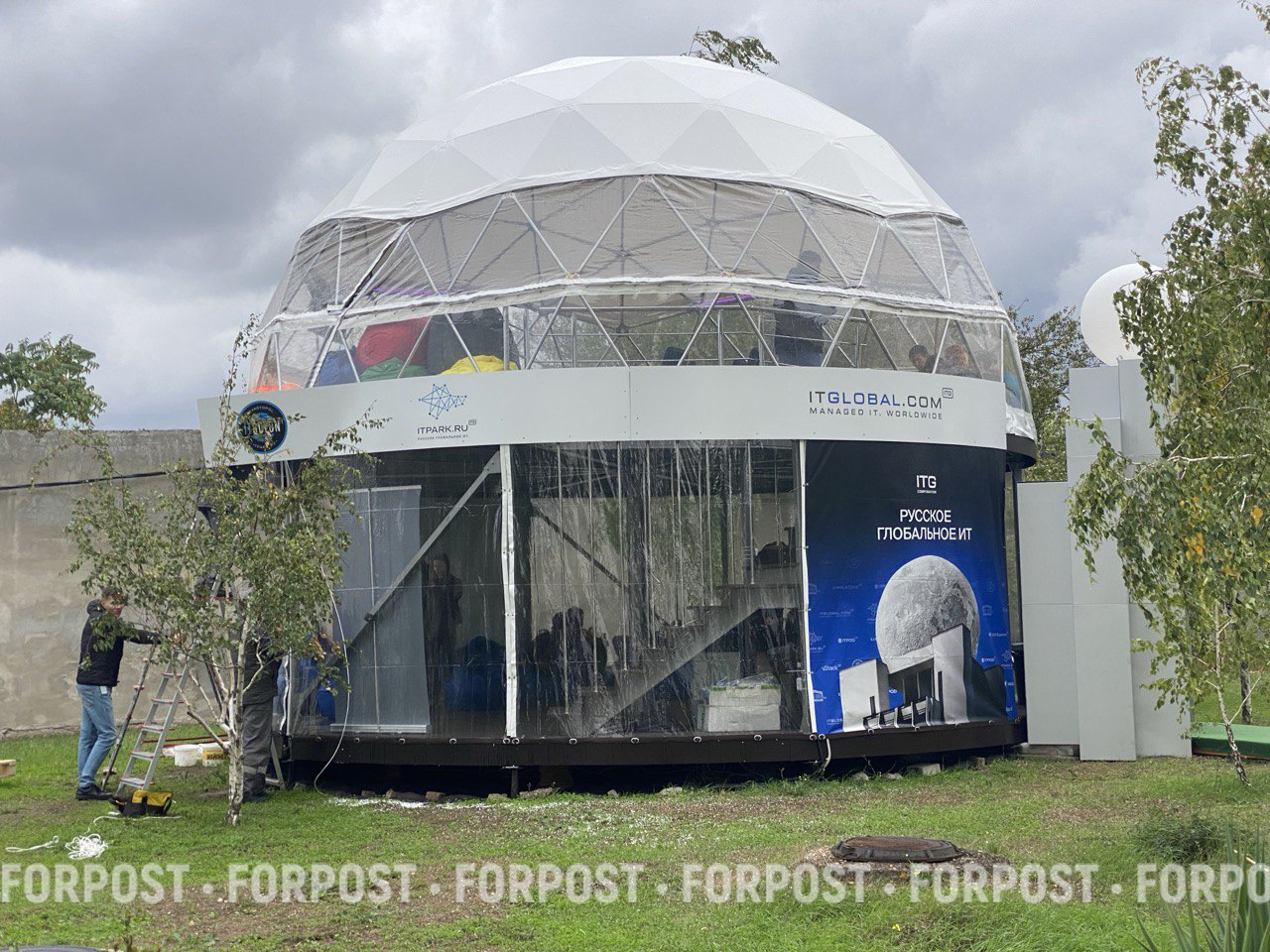 В какой-то момент внимание корреспондента ForPost привлекла куполообразная конструкция, павильон в окружении берёз, на стенде которого было написано: «Русское глобальное ИТ».