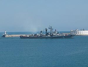 С целью пополнения запасов воды и топлива корабль с деловым заходом посетил сирийский порт Тартус, где располагается пункт материально-технического обеспечения ВМФ.