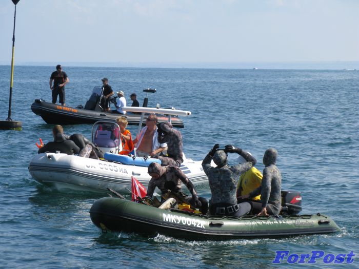 На снимках: во время чемпионатов Украины по подводной охоте.