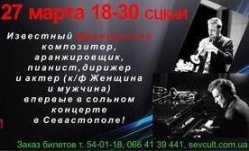 26 марта в кинотеатре «Россия» артист представит севастопольской публике фильм К. Лелуша, в которой исполнил одну из главных ролей, «Женщина и мужчины», а также поделится собственными впечатлениями о картине.