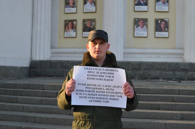 В Севастополе первый секретарь горкома комсомола Александр Черемёнов принял участие в одиночном пикете против преследований коммунистов, комсомольцев и левых активистов. Об этом говорится в группе севастопольского комсомола «ВКонтакте».