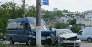 Вчера днем в Севастополе серебристый седан с российскими номерами врезался в маршрутку. ДТП произошло возле остановки "Улица Шостака".
