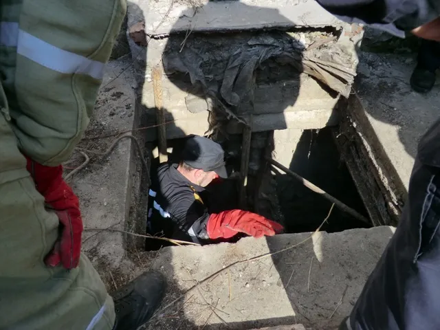 22 марта днём спасатели МЧС достали бездомную собаку из семиметрового люка по улице Ленина.