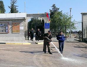 Не начинающийся туристический сезон, а визит главы государства заставил чиновников нанести разметку на дороги, ведущие к Херсонесу, убрать свалки вдоль них, а сегодня с утра севастопольцы стали свидетелями того, как пожарные машины МЧС были выведены на особо важное задание – мытье площади перед въездом в заповедник из брандспойтов. Причем, тротуары мылись с таким усердием, что бойцам МЧС пришлось поливать асфальт несколько часов.