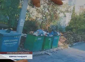 Коммунальные службы Севастополя возле дома № 17 по ул. Пролетарской установили все мусорные баки с ближайших дворов, из-за чего в подвале дома появились блохи и крысы.