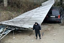 Сегодня днем в Севастополе, в начале Мореходной улицы, крыша автобусной остановки упала на припаркованный неподалеку внедорожник.